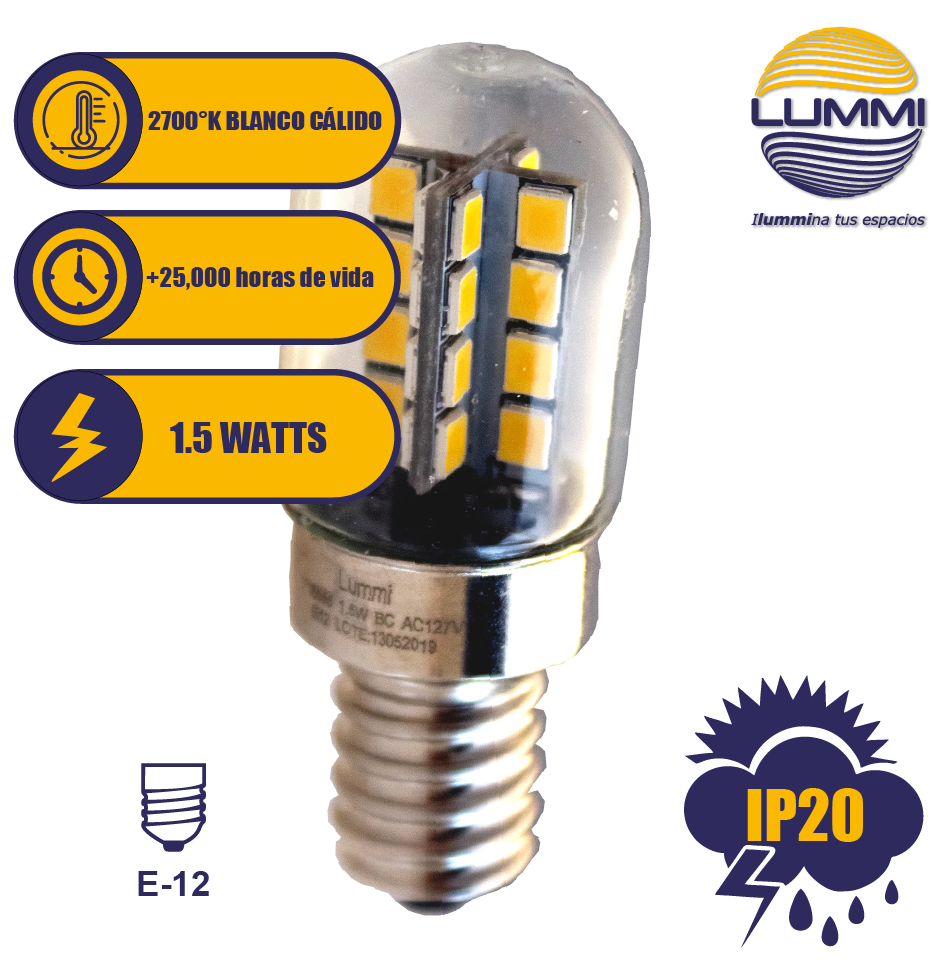 - Lámpara LED T20 E12 de 1.5W a 127V